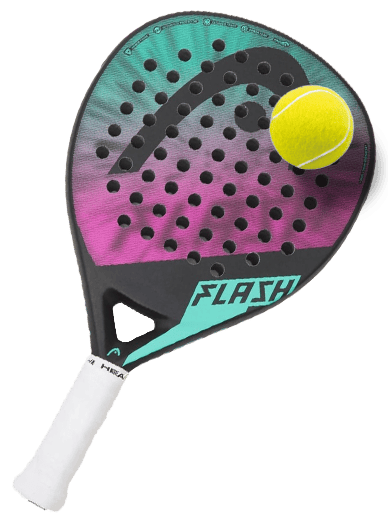 Padel wird mit einem kurzen Schläger mit einer elastischen Oberfläche mit Löchern und einem fast identischen Tennisball gespielt.